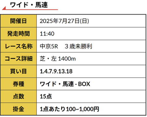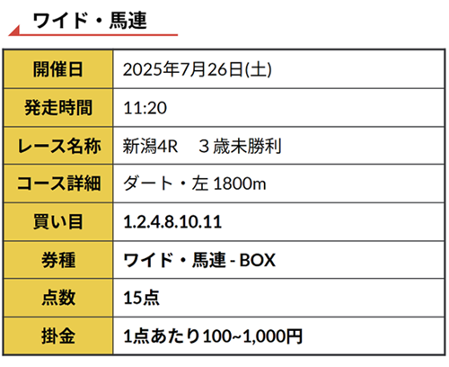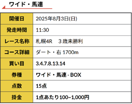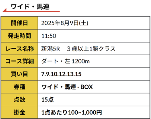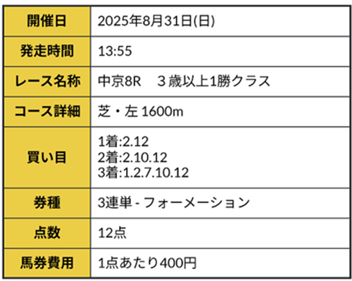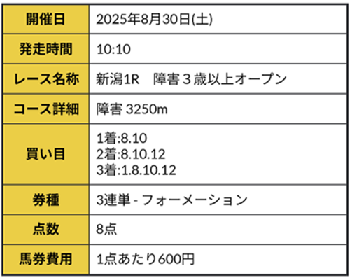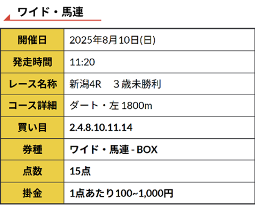 2025.8.10 新潟4R(馬連) | +45,600円 | ◎ |