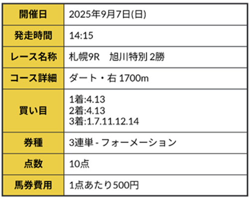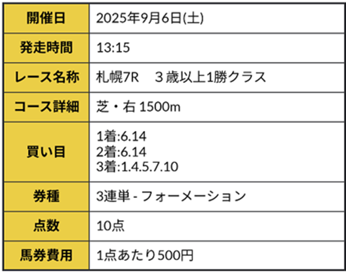 2025.9.6 札幌7R(3連単) | -5,000円 | ✕ |