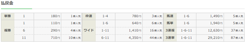6 | 10 | シックスレイヴンズ | 21.9倍 | 7番人気 | 木幡巧也 |