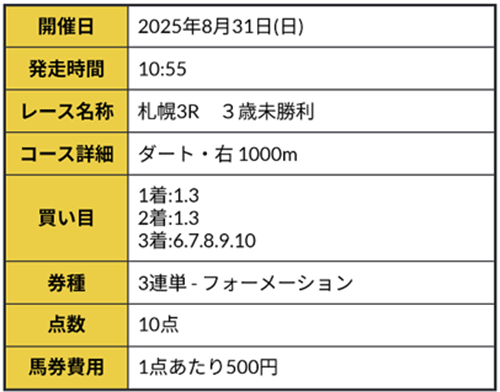 2025.8.31 札幌3R(3連単) | -5,000円 | ✕ |